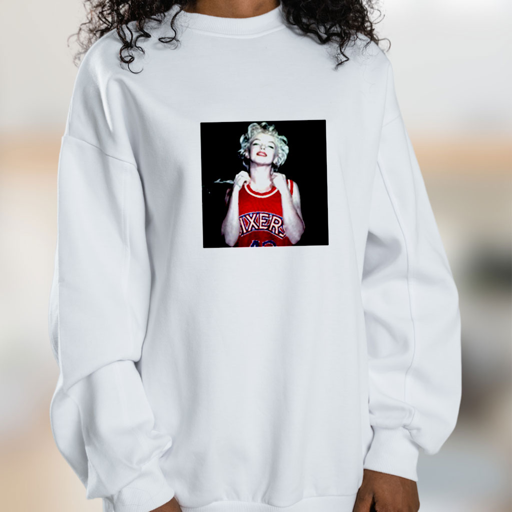 Marilyn Monroe Norma Jeane Wearing Philadelphia 76ers Sixers Jersey Graphic Sweatshirt – Sizes S, M, L, XL, 2XL, 3XL
